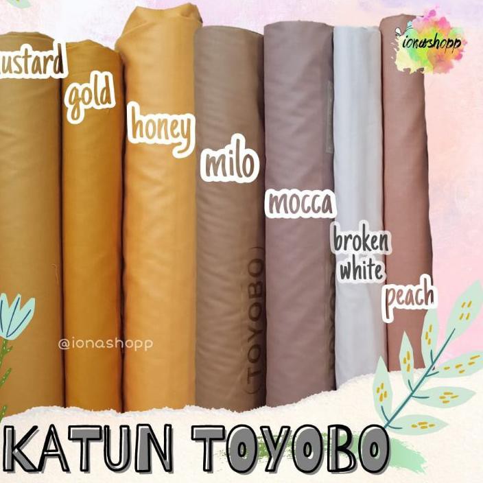 Salah satu jenis bahan katun yang sedang menjadi tren adalah bahan toyobo. Kain katun supernova yang dingin, lembut, halus dan berbahan ringan. Katun toyobo adalah salah satu jenis kain katun dengan tekstur yang halus dan lembut. Kamu bisa memilih alternatif lain seperti kain katun supernova, katun toyobo, atau katun ima. Kain katun toyobo ini mempunyai ciri khas yang tidak kaku, ringan, adem saat di pakai dan juga halus di kulit serta tidak licin.